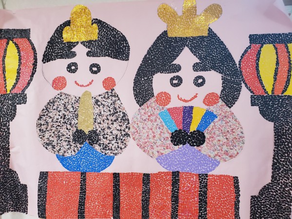 こちらの可愛いちぎり絵は、利用者様とケアスタッフの共作となります。