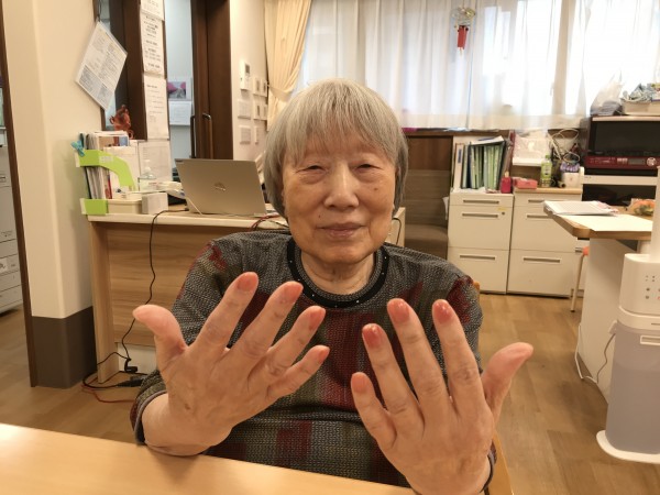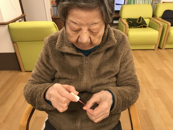 マニュキアを塗る・塗らない、色の選択もご自身で♬ マニュキア塗ったりと中々、写真が追い付かず途中、急遽カメラマンI様登場(笑)味のある写真になりました♬ マニュキアを塗っていると「女性はいくつになっても女ね~。やっぱりこういうの塗ると嬉しいね」とM様の名言も飛び出しました。