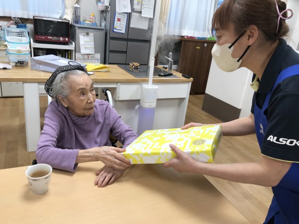 ひな祭りレクもありましたが、丁度、この日はT様のお誕生日当日♬ ご家族様からのプレゼントを渡すと照れ笑いのT様でした。