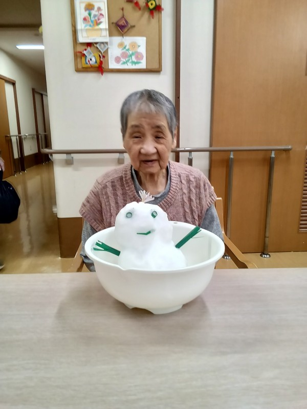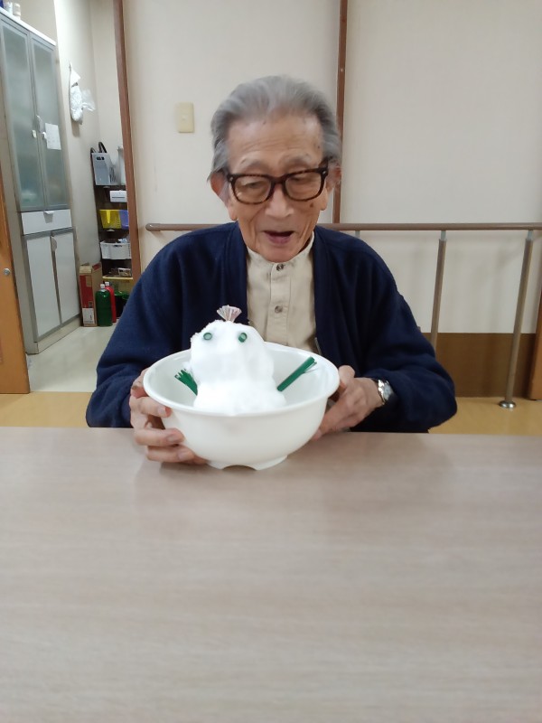 先日、季節外れの雪が松伏にも降り積もり、外に出たスタンプが小さな雪だるまを作り