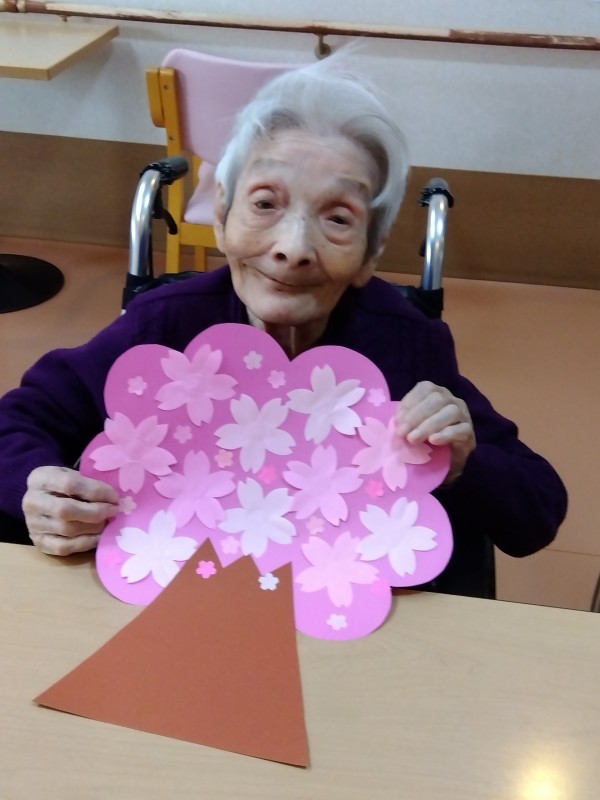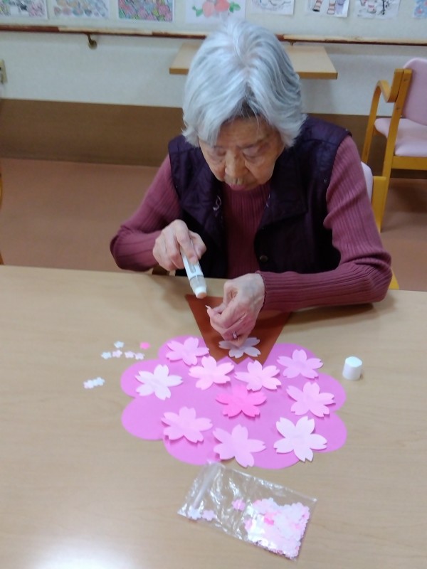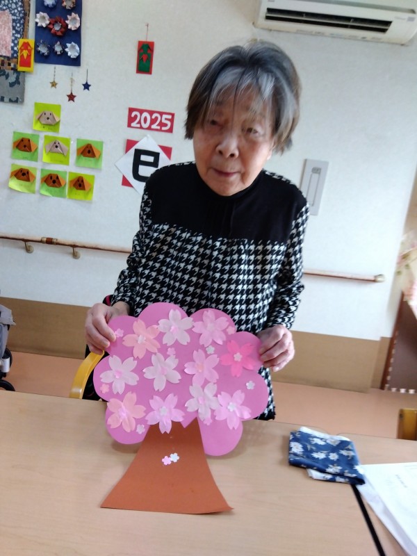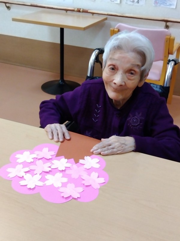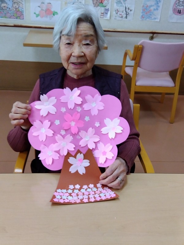 先日、入居者様と一緒に春の壁飾りを作りました。