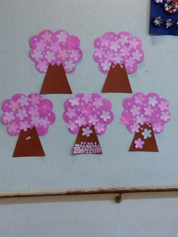 折り紙や色紙を使い、かわいい桜の木が出来ました。