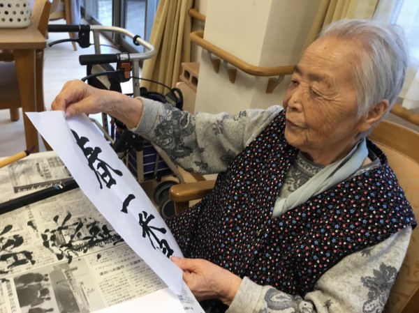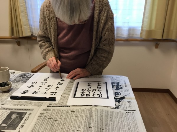 墨汁と筆で習字を書く方もいる中、写経をやる方もちらほら見られました。