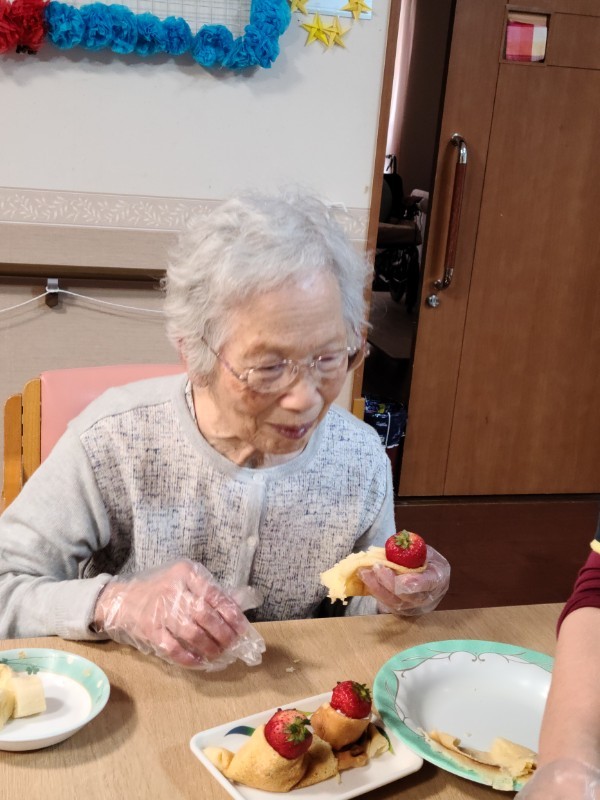 皆さんでクレープのお雛様を作って食べたので