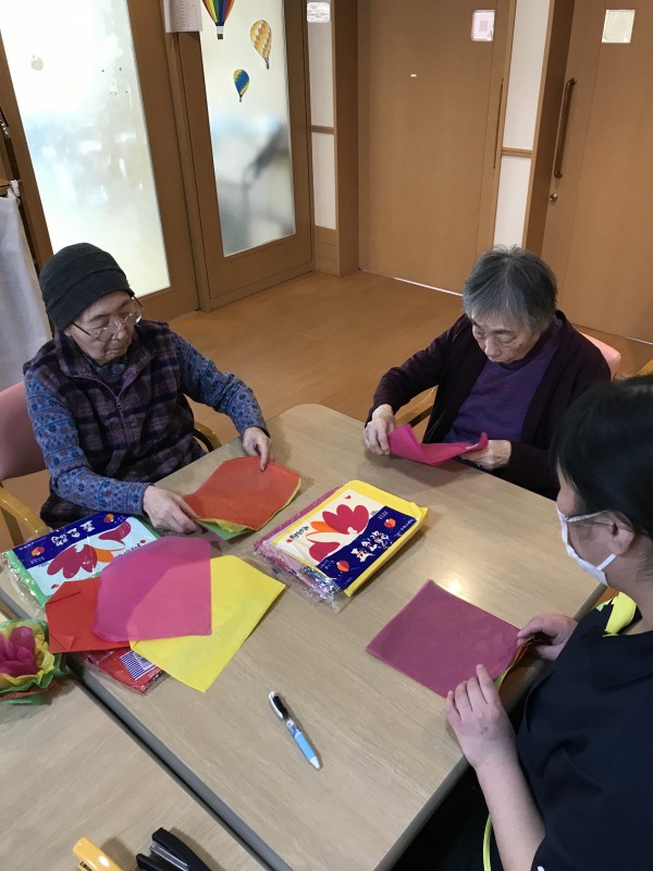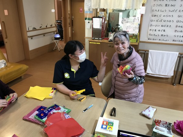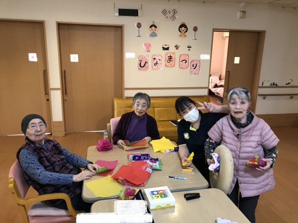 今回はひな祭り飾りお花紙を手伝って頂いた様子です!!