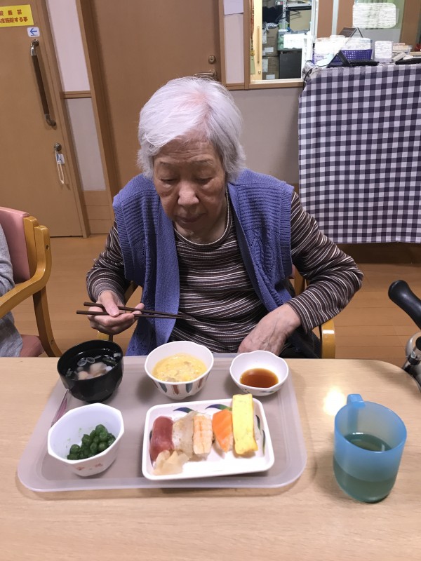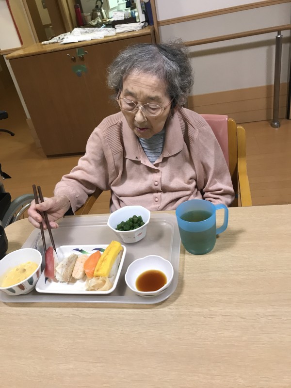 桃の節句御膳、5種の握り寿司、うぐいす豆