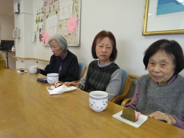 3時のおやつには、ひな祭りの定番お菓子「さくらもち」をお出ししました!