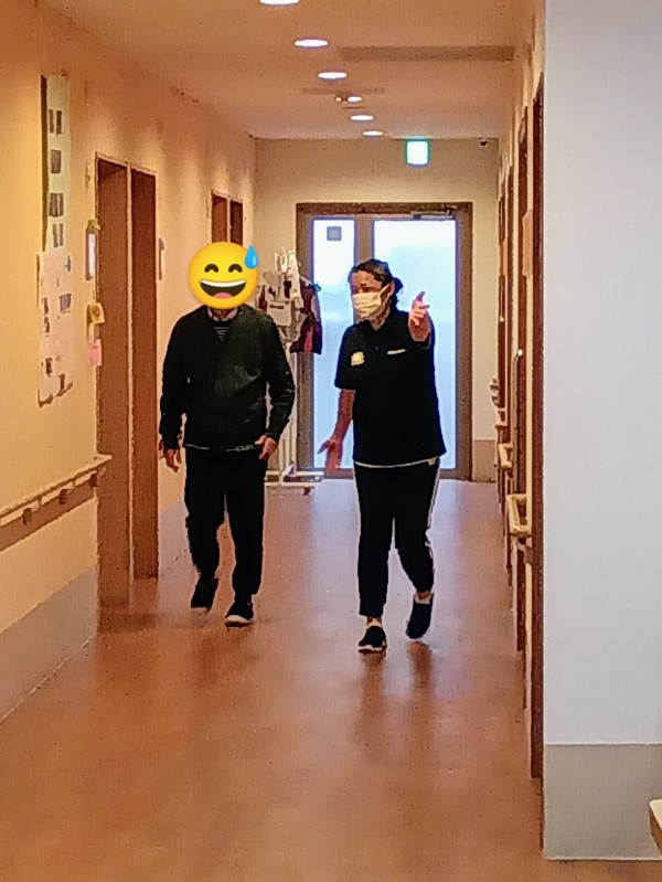 夜間想定なので、夜勤をされるスタッフが1人の時に火災が発生したと想定して避難訓練を行いました。