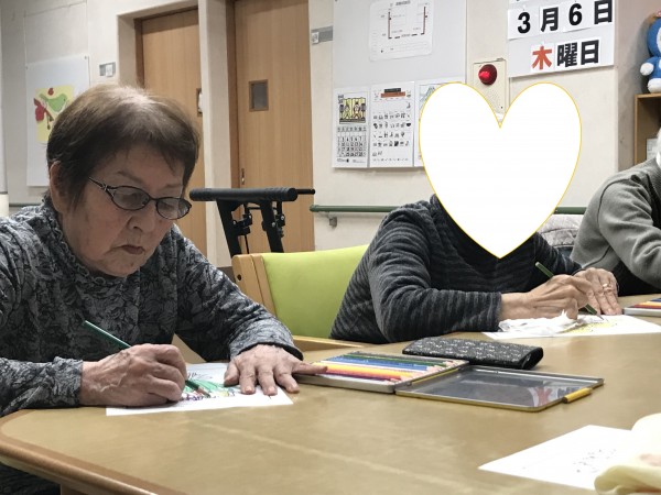 「書く」ことが大好きな利用者が多くおられぬり絵を提供すると喜ばれます(^^)/