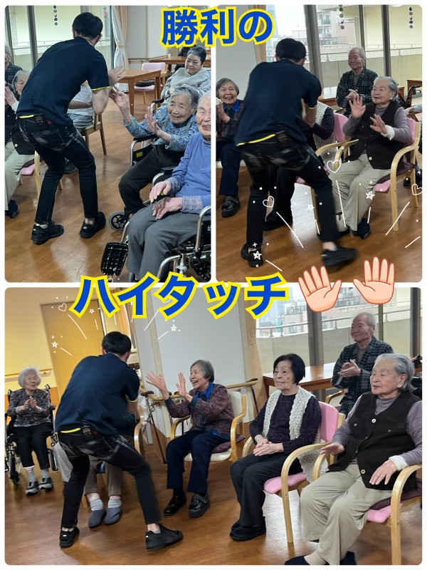勝利を勝ち取った髙村は、すぐさまご入居者様と