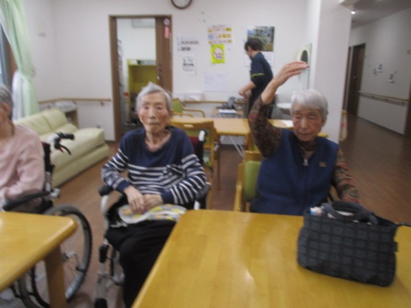 みなさま元気いっぱいでした。手が上手く上がらないわ? 手伝って~?と話されました。少しお手伝いすると”ありがとう”!と喜ばれました(*^_^*)