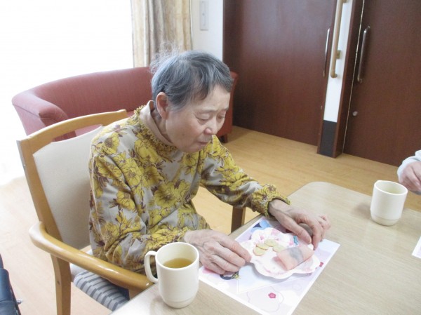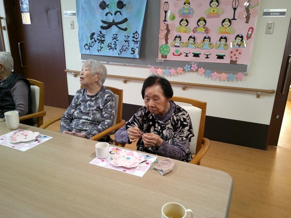 前回のブログではひな祭り会のおやつ作り編をお届けしましたので、今回は皆様揃って召し上がっているご様子をお届けします♪♪♪