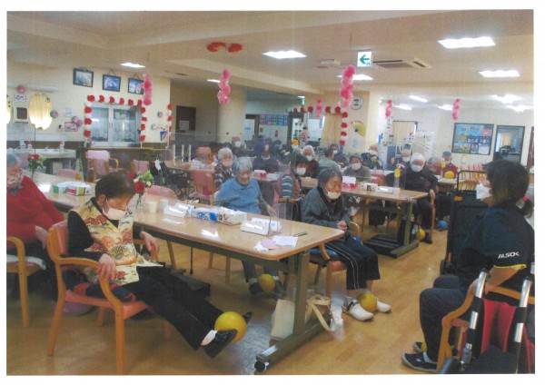 本日午後のレクリエーションは「介護予防運動」デイサービスセンター遊では、楽しみながら体を動かすことを大切にし、定期的に介護予防運動を実施しています。介護予防運動は、ボールとセラバンドを使用した座ったままできるエクササイズです。「運動は大切だと分かっているけど、一人ではなかなか続かない…。」そんな方も、みんなと一緒なら楽しく取り組めるのがデイサービスの魅力です。