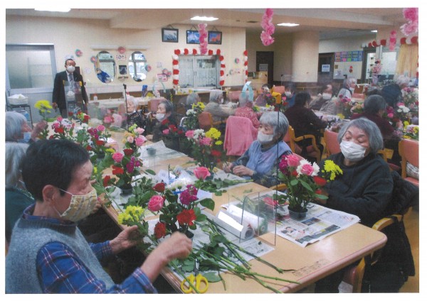 本日午後のレクリエーションは、毎回大好評の「フラワーアレンジメント教室」。楽しい教室の様子をご紹介いたします。