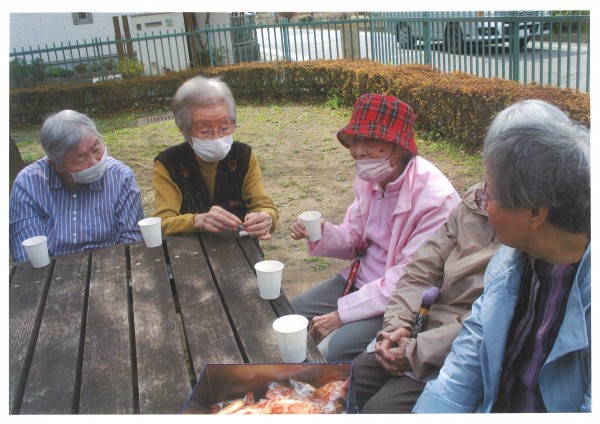 レモンティーとおやつを片手に、きれいな桜を眺めながらの午後のひととき。桜にちなんだクイズや豆知識などを楽しみ、会話も弾みました。桜には様々な効果・効能があるそうです、美容にも良いと聞いて女性陣はとても盛り上がりました♪お花見の締めは、写真撮影会????桜をバックに記念撮影しました。皆様の笑顔も花のように輝いていました✨