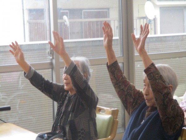 一種懸命リモート体操に参加されていました。元気いっぱいに手を伸ばしたりされていました。口を開けたり声を出したりとされていました。