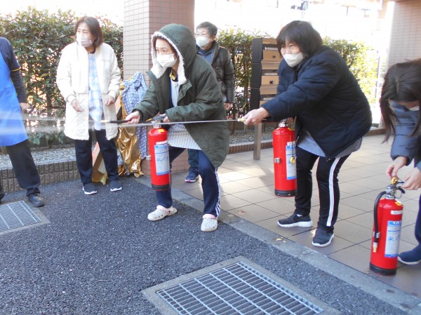 その後はスタッフで水消火器を使い、消火器の使い方を再度確認しました。