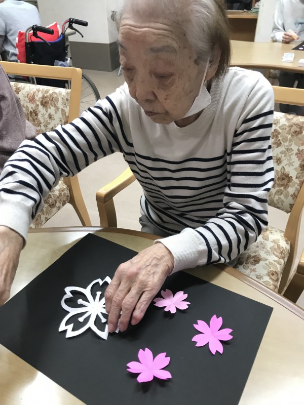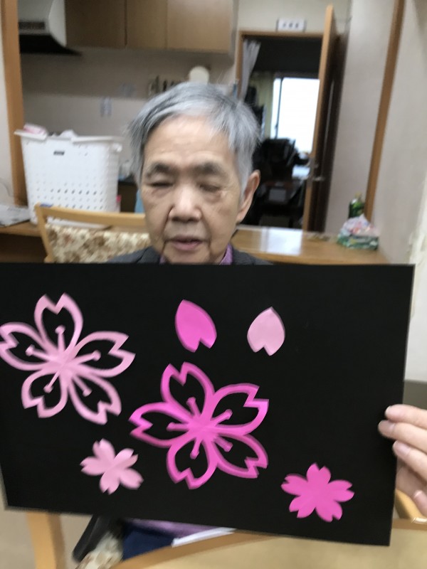 桜の飾りを折り紙で作りました。