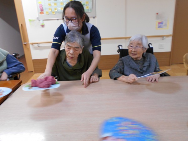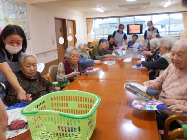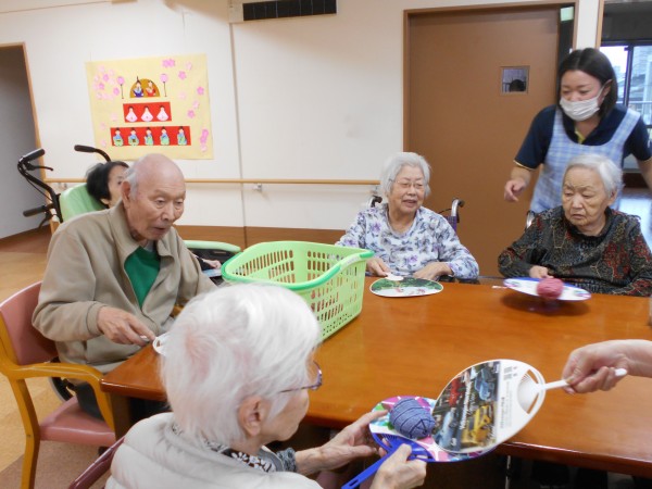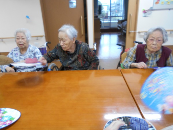 今回のレクのゲームはうちわとお手玉を使いました(*^^*)
