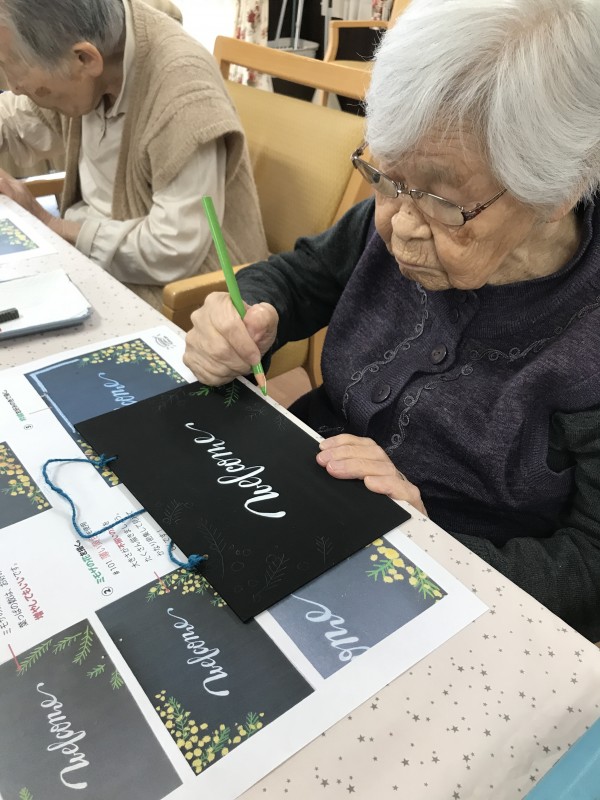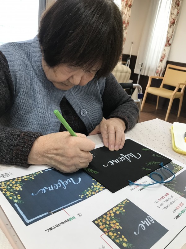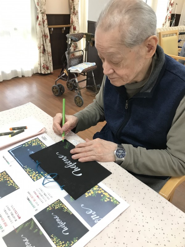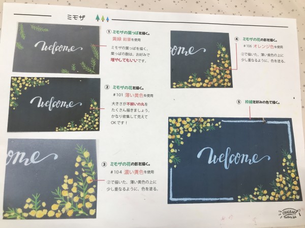 ミモザを描きながらウエルカームボードの作成です(^^♪