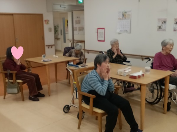 この日は、リモート運動教室でもお馴染みの「ALSOKあんしんヨガ」で行われている「口腔ヨガ」で準備体操。