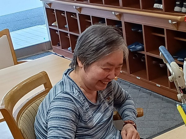 玄関でご利用者様と何気ない会話をしていると、下を向きながらクスクスと笑い始めました。