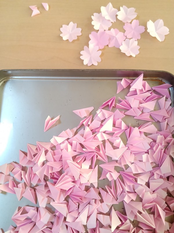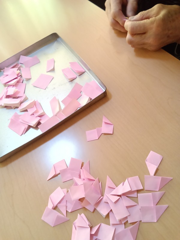 折り紙だけで作っています「ずれたら大変、ちょっと緊張…」