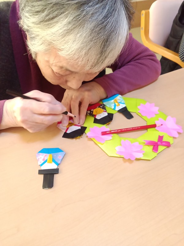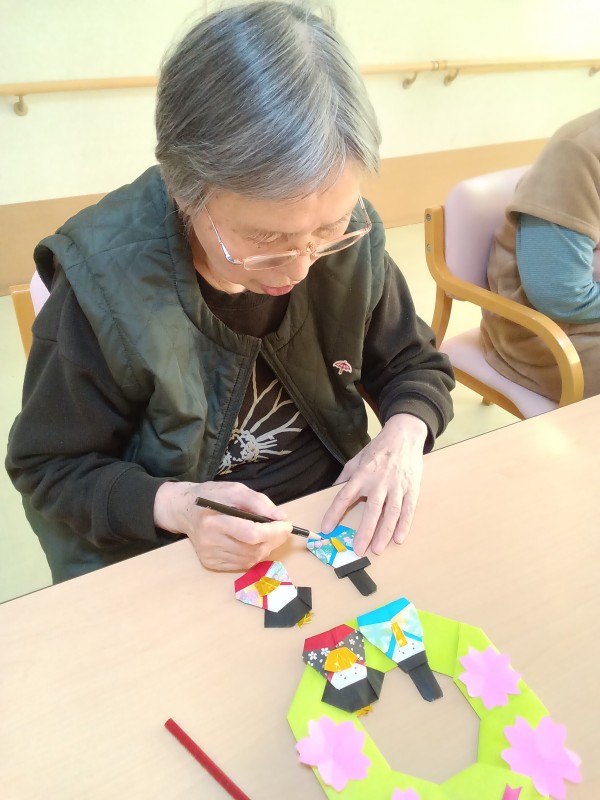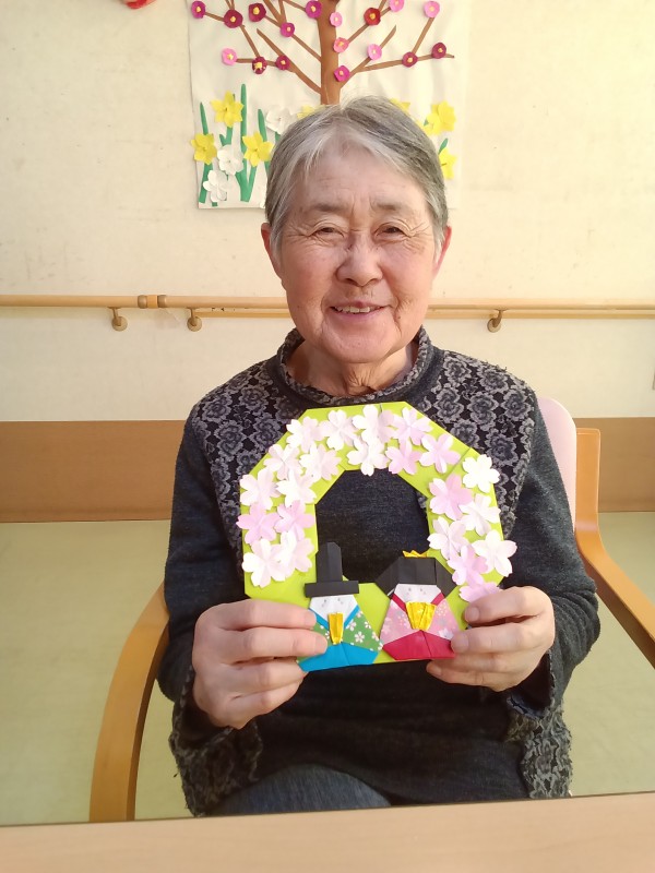 完成!会心の作、ですね!ステキなお雛様リースが出来上がりました~♫