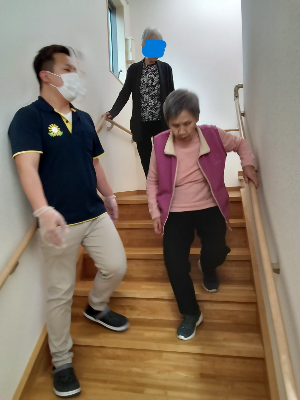 階段の昇降運動を終えると、自主的に体操もされていました。