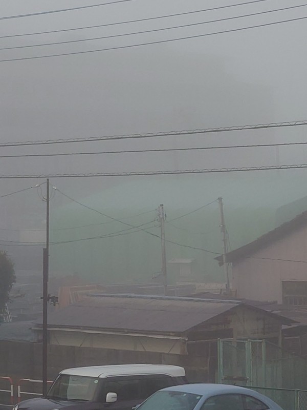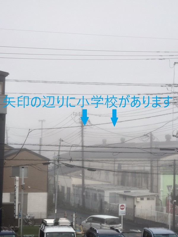 近くにある鴨川が特に霧が濃く、普段は見えるはずの小学校が見えません!!!