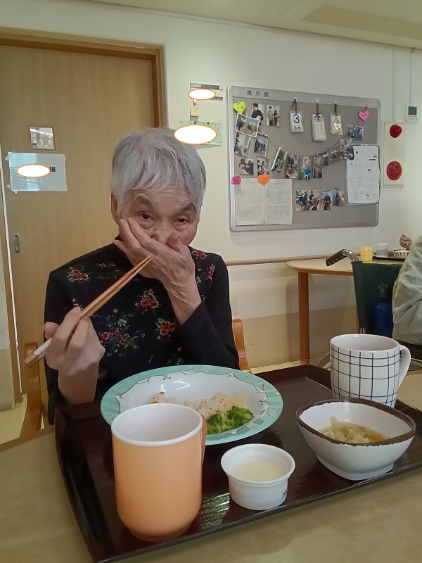 「おう、うまそうだなあ」と男性のご利用者様の声が聞こえ