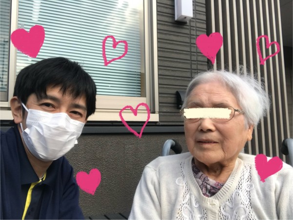 本日1階では日中の暖かい時間に男性スタッフ同行のもと施設敷地内をお散歩されました(^-^)