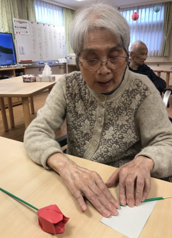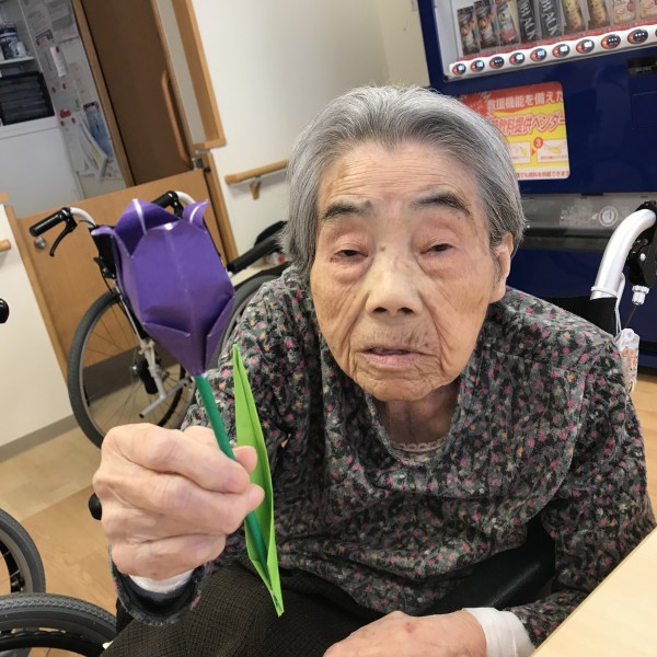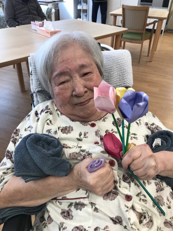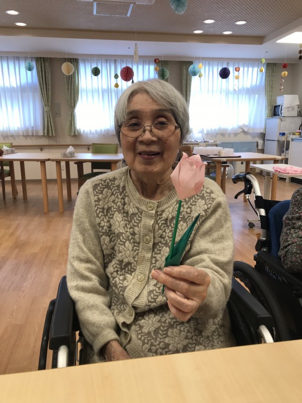 本日は午前中から皆様と折り紙でチューリップを作ってみました。