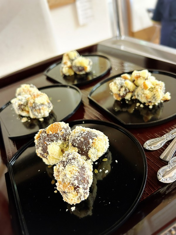 次は丸めたあんこにパウンドケーキを塗していくのですが…思ったよりパウンドケーキがあんこにくっつかず、ぽろぽろ零れる事態に(;´_ゝ`)