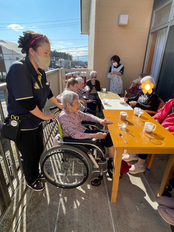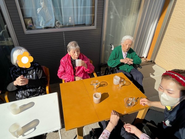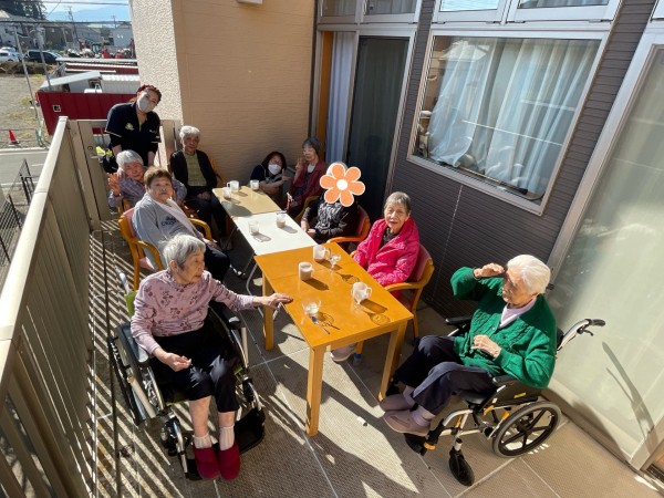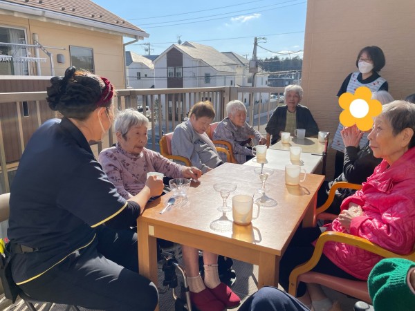 春の訪れを感じる今日この頃。お天気が良かったので、2階のご利用者様と一緒にベランダでおやつを楽しみました!