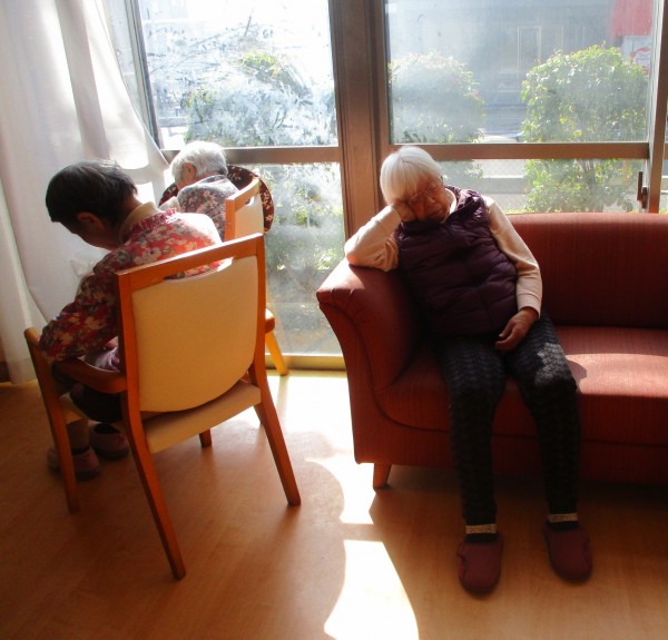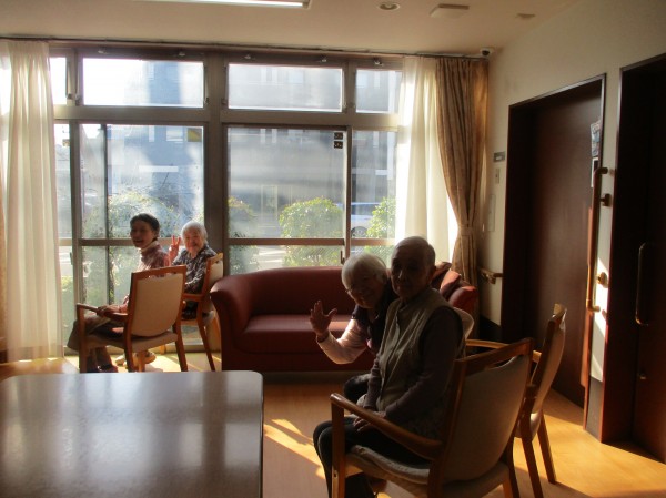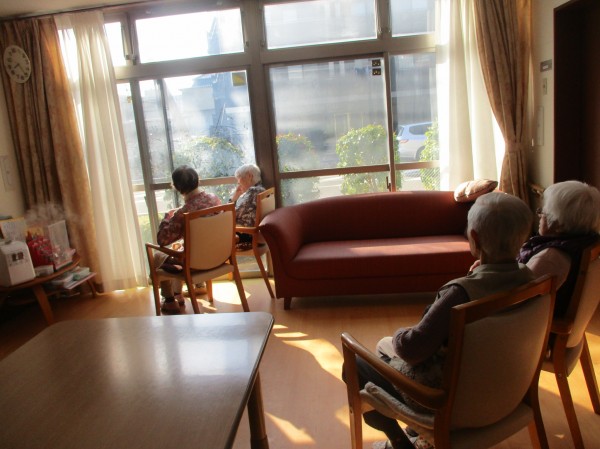 この日の朝食後、「今日は天気が良くていいね~」「こんな日は日向ぼっこだー(*'▽')」と皆様窓際に集まり楽しそうに会話をしています♪
