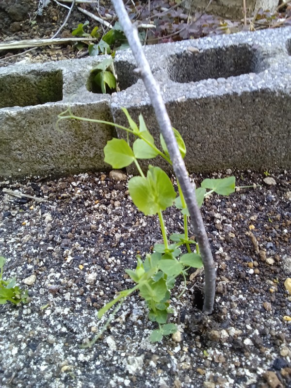 遅蒔きしたえんどう豆も、だいぶ伸びてきました。