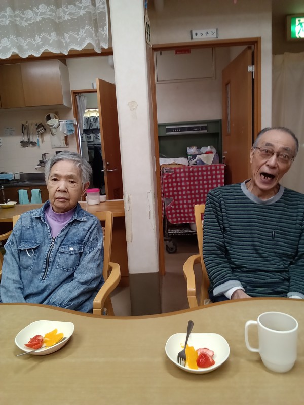 お散歩から戻り、ホームのベンチで日向ぼっこで会話が弾みました。
