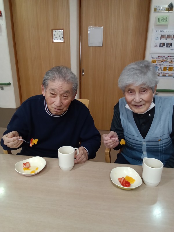 お散歩から戻ったら、1階のご利用者様のご家族様から頂いた、イチゴを頂きました。