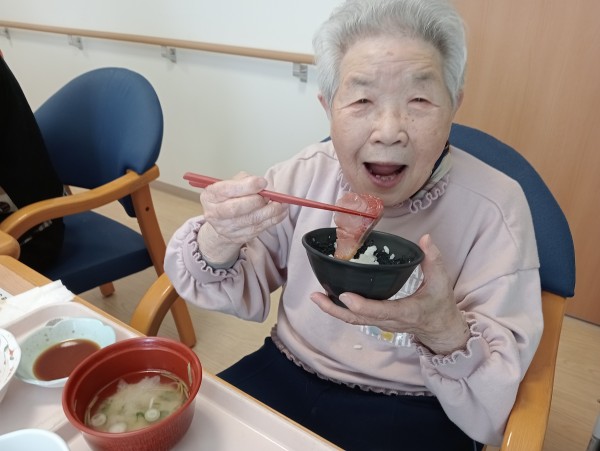 昼食にぶりのお刺身とあら汁がついていよいよ実食です(*''▽'')