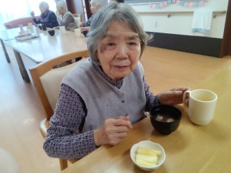 先日のひな祭り会で余ったあんこがあったので、お汁粉風にしました(*'▽')