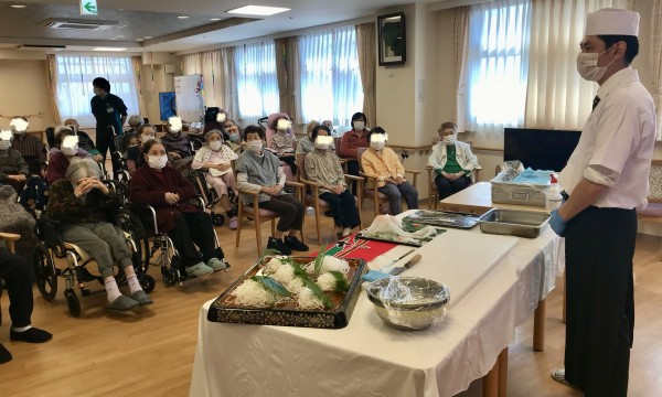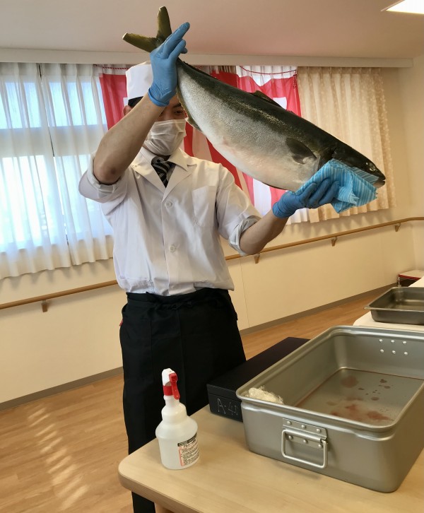 3月23日(日)に鰤の解体ショーが行われ、全階のご利用者様が参加されました!