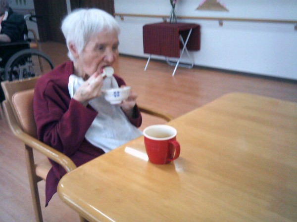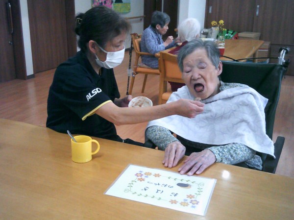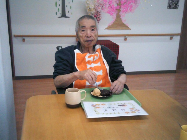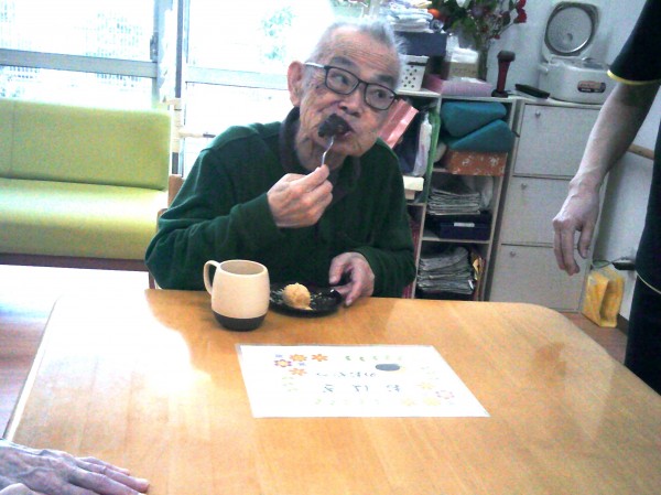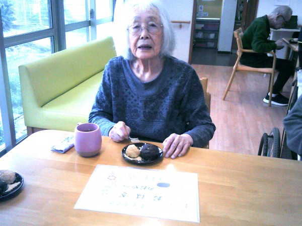 今日はおはぎを作りました。召し上がられているご様子をお知らせいたします。 あら~! 美味しそうね!と笑顔になりました(*^^)v