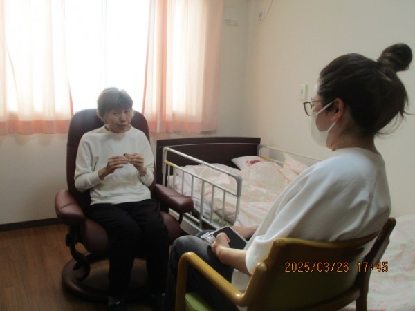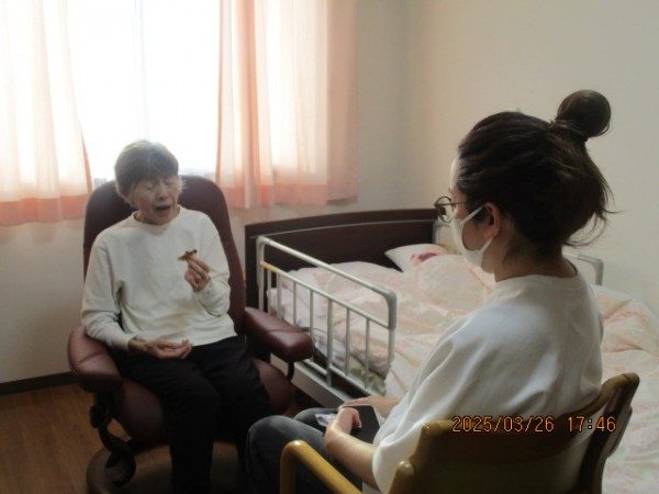 今日は娘様が来られました。そのご様子をお知らせいたします。 居室にてお話をされていました。楽しそうでした(*^_^*)