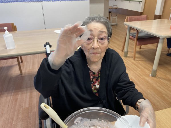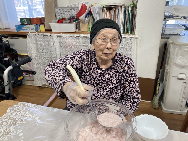 みんなで混ぜ混ぜ。最後は「やなか」の女将さんによる厳しい審査が入ります。
