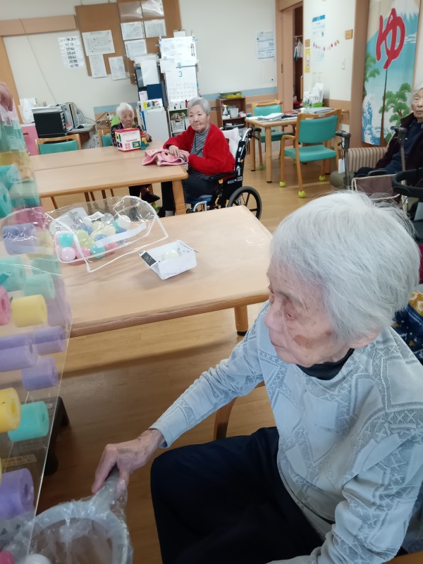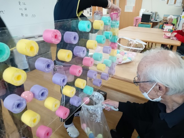 今日は楽しいレクリエーションのひとつとして「ボール落としゲーム」を開催しました!