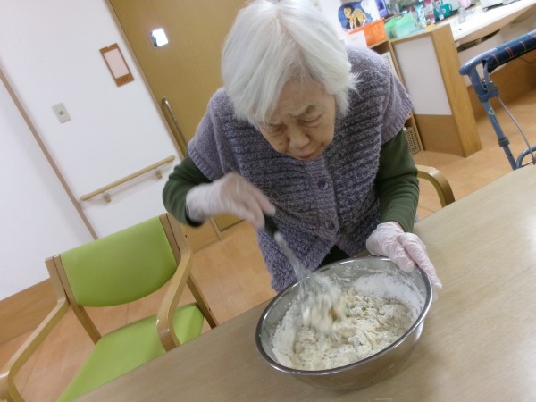 今日はスタッフの家で採れたふきのとうを使って「ふきのとうのおやき」を作りました!