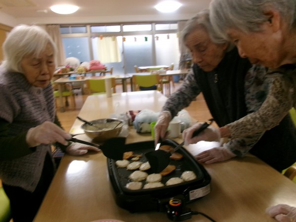 ホットプレートに油を熱し、生地をスプーンで落として焼く。両面がきつね色になるまで中火で焼く。ふきのとうの香りが広がる中、みんなで焼きたてのおやきを味わいました。春の訪れを感じられる素敵な一日でした!
