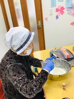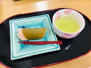 桜の葉を敷いて、その上に薄皮、そしてアンコを包みます(*^^*)