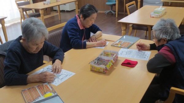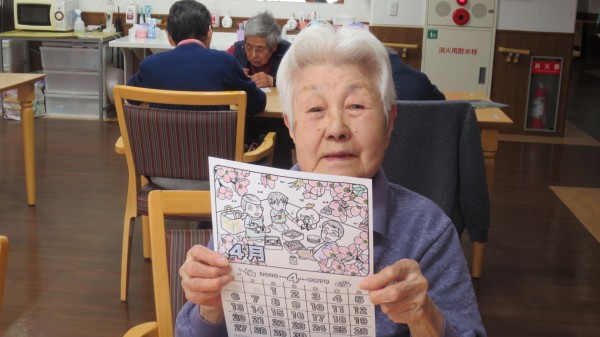 さて、本日は先月末に4月の塗り絵カレンダーを制作したので、その時の様子をご紹介します♪桜餅とお花見のイラストのカレンダーです????